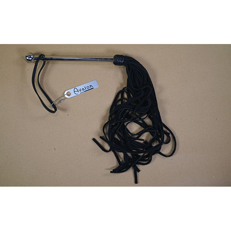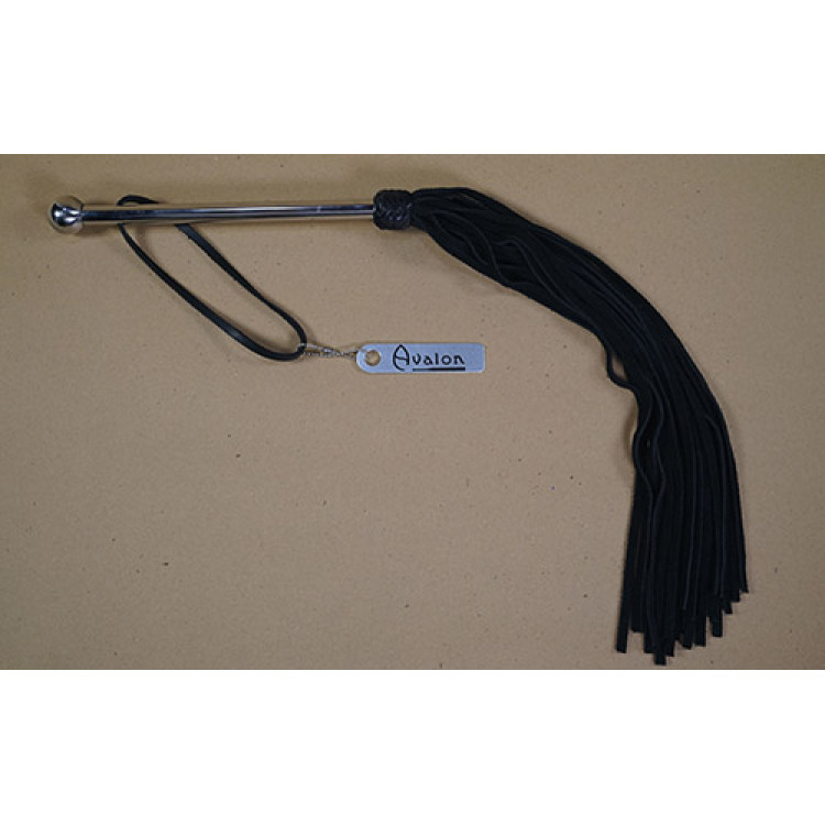 Avalon - PROPHET - Sort lang flogger i semsket lær med metallhåndtak