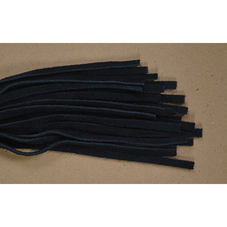 Lang flogger i sort semsket lær.