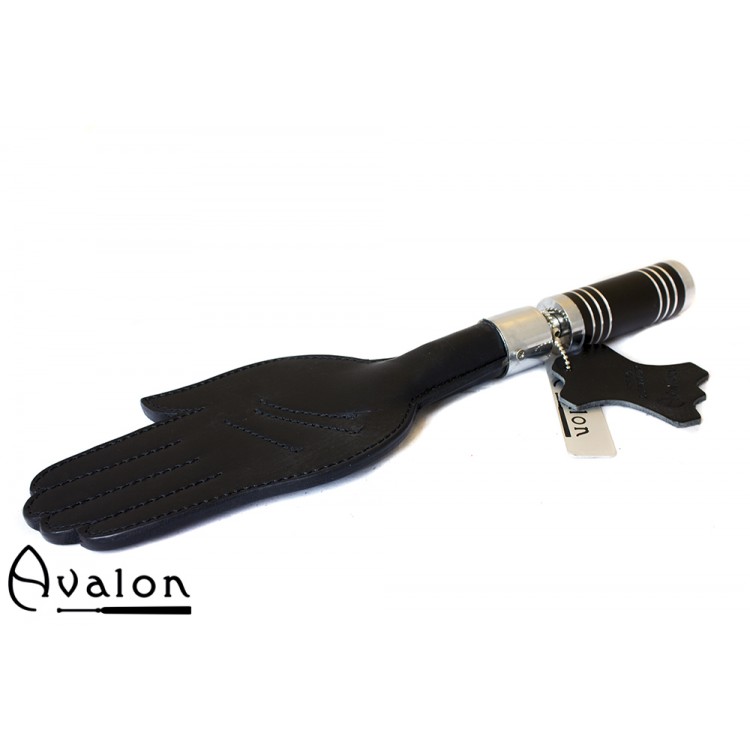 Avalon - SOLOMON - Paddle med håndform og brunt metallhåndtak med striper - Sort