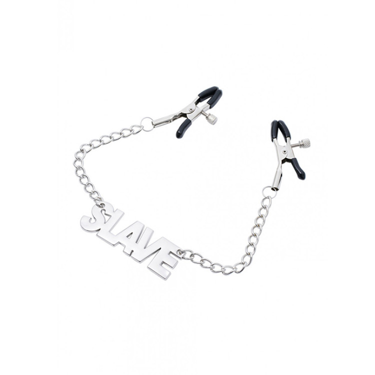 BQS Brystklyper med kjetting SLAVE er sexleketøyet for deg som liker dominans, eierskap og den deilige følelsen av å bli merket. Her får du klassiske, justerbare brystklyper koblet sammen med kjetting og en metallplate med teksten SLAVE som gjør budskapet krystallklart. Stramt, frekt og akkurat passe brutalt.