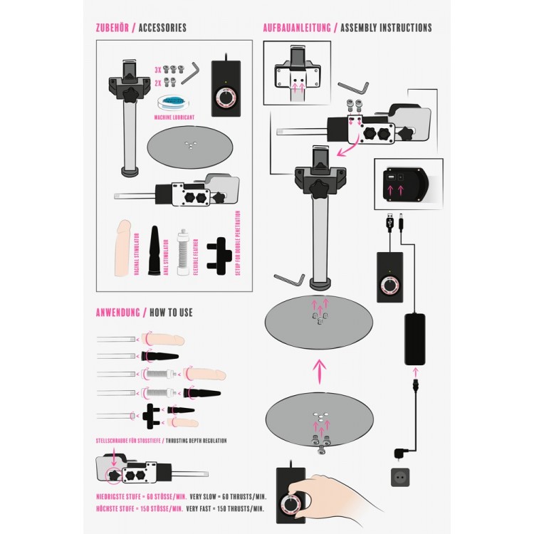 Du kan bruke den sammen med en partner eller alene, uansett så vil denne maskinen oppfylle dine fantasier, enten du vil ha vaginal, anal eller bege deler.