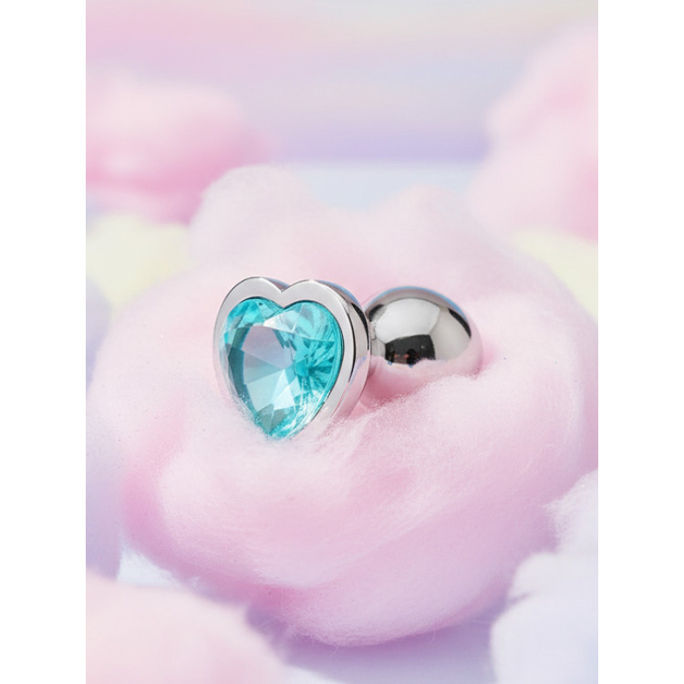 Buttplug med lys blå hjertekrystall.
