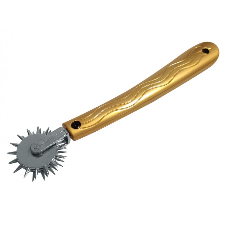 Pinwheel laget i rustfritt stål med tre rader og håndtak. Rull denne over huden og opplev en lett, kilende følselse som skaper spenning. Perfekt for sanseleker.