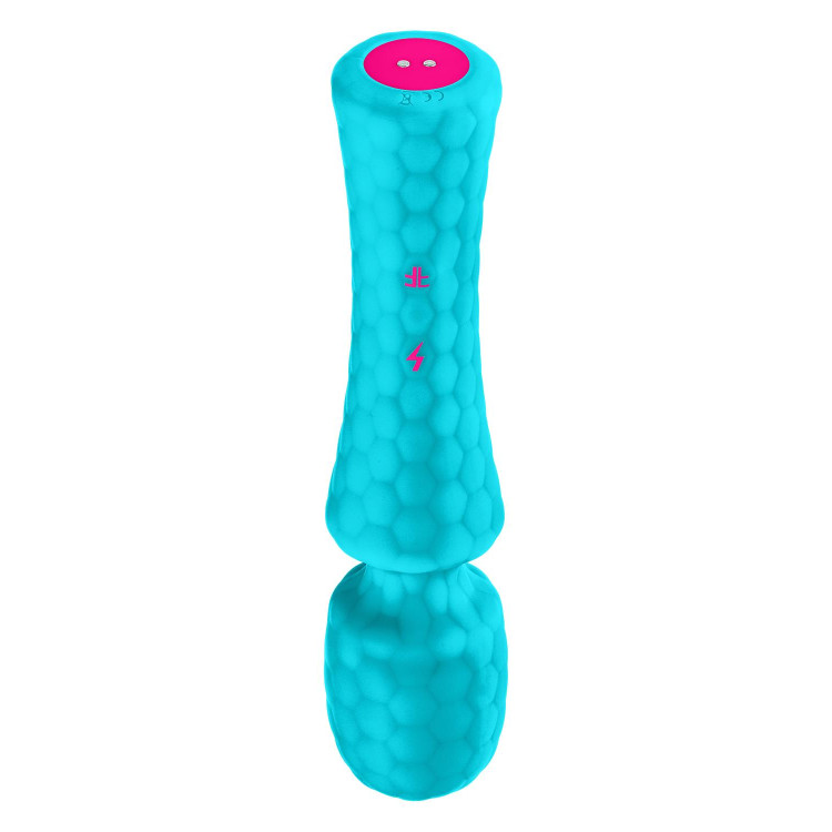 Den sekskantede teksturen av førsteklasses, silkemyk silikon eksklusivt for FemmeFunn bidrar til nytelsen og føles magisk mot huden. Teksturen hjelper også glidemiddel å vare lengre på staven. Den magnetiske USB-ladingen gjør den 100 % vanntett og lett å nyte hvor som helst.