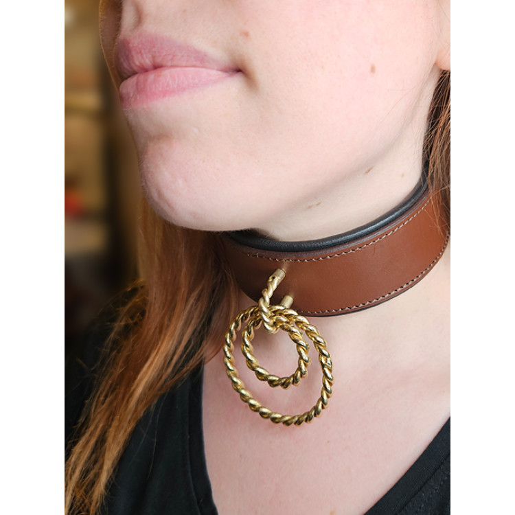 Avalon Viking - Nieve - Collar med to ringer - Brun og gull