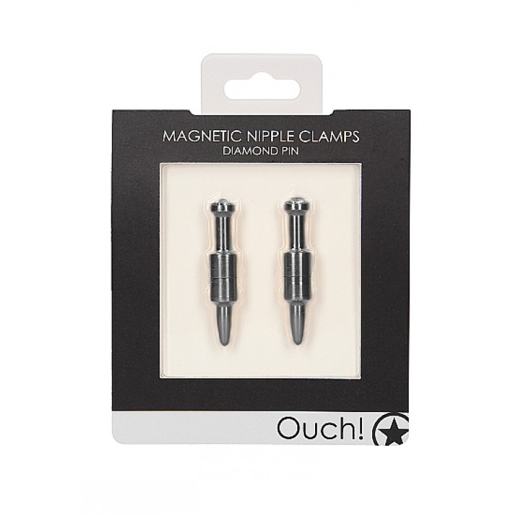 Ouch! Magnetic Nipple Clamp - Diamant Pin - Sølv
