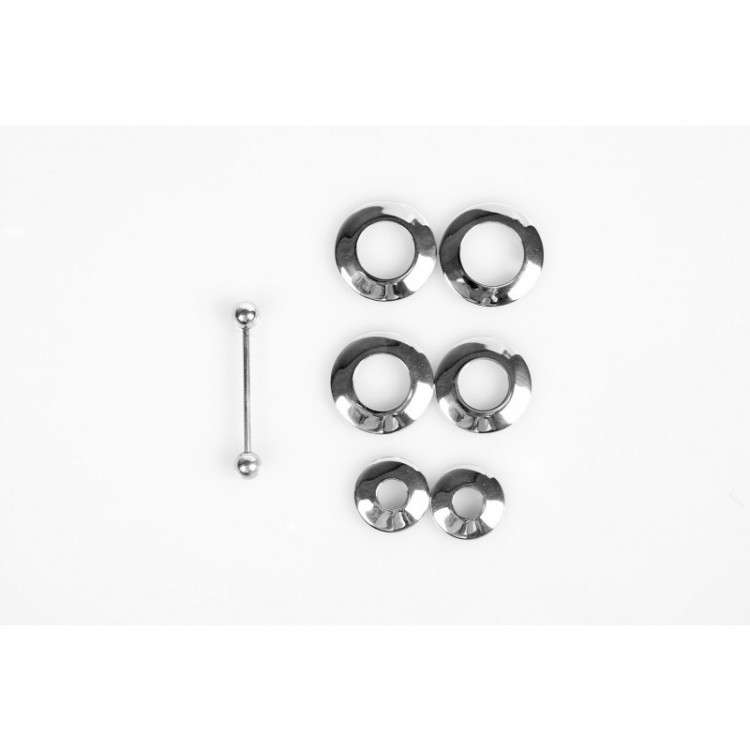 Piercing med 6 ringer i 3 forskjeligge størrelser.