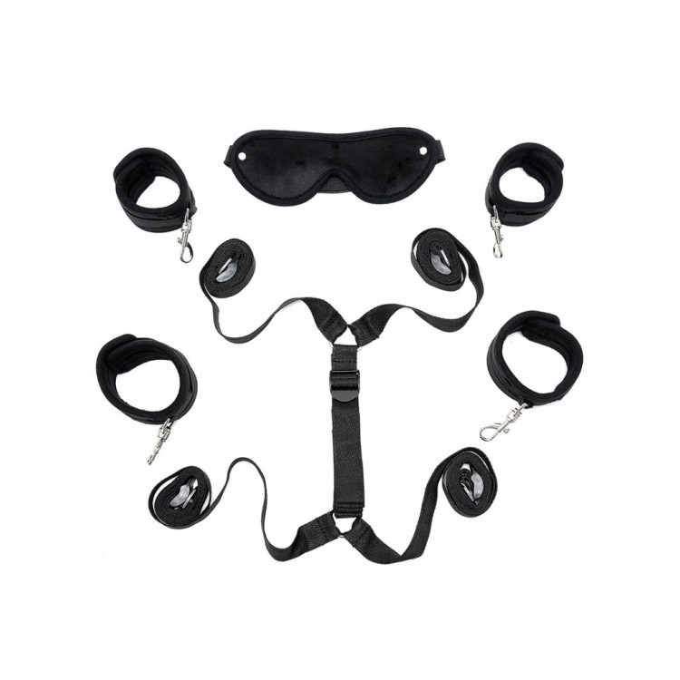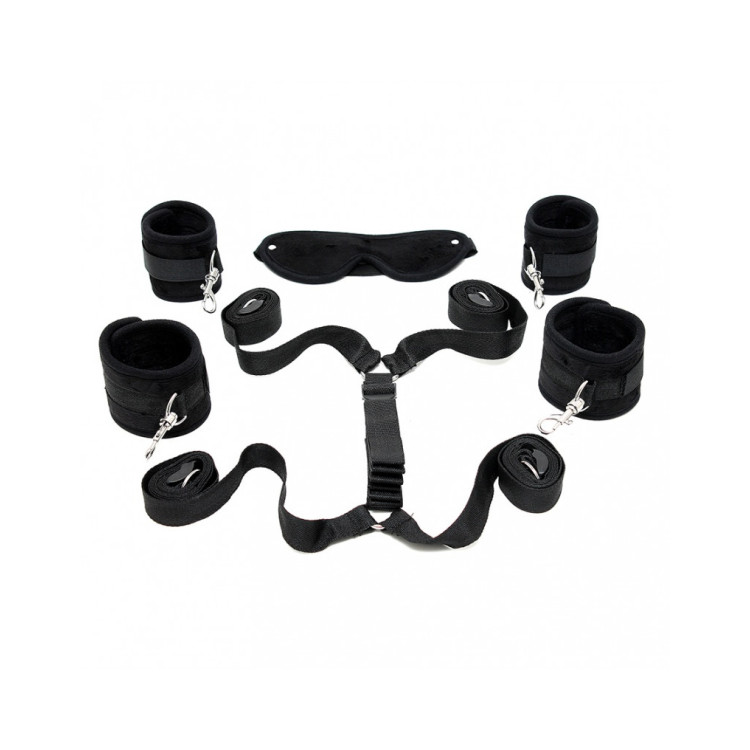 Settet kommer med stropper til sengen, 2 håndcuffs, 2 ankelcuffs og karabinkroker for å feste cuffsene til stroppene. Cuffsene er justerbare med borrelås. Stroppene kan justeres, slik at den passer sengen uansett størrelse.