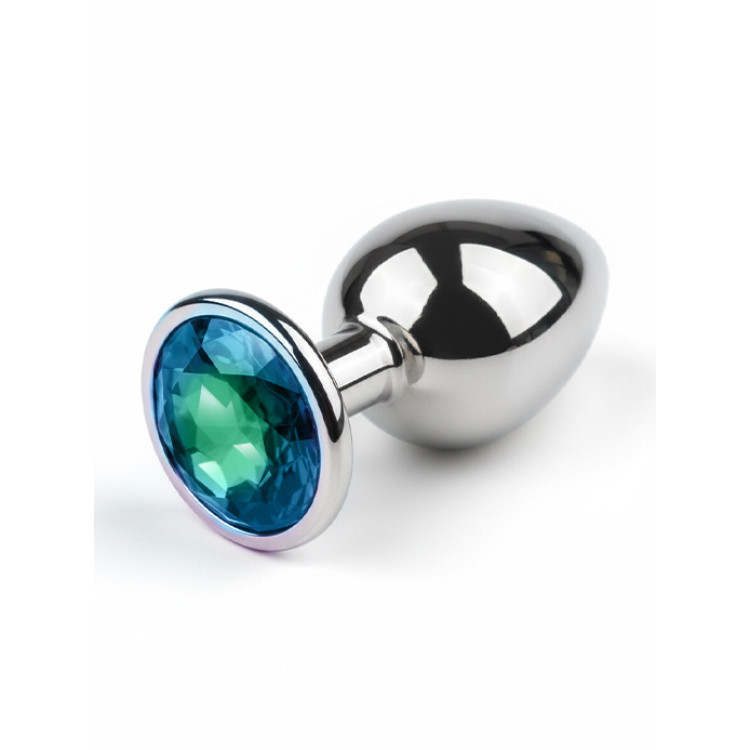 BQS - Buttplugg i metall med tofarget krystall -Blå/Grønn