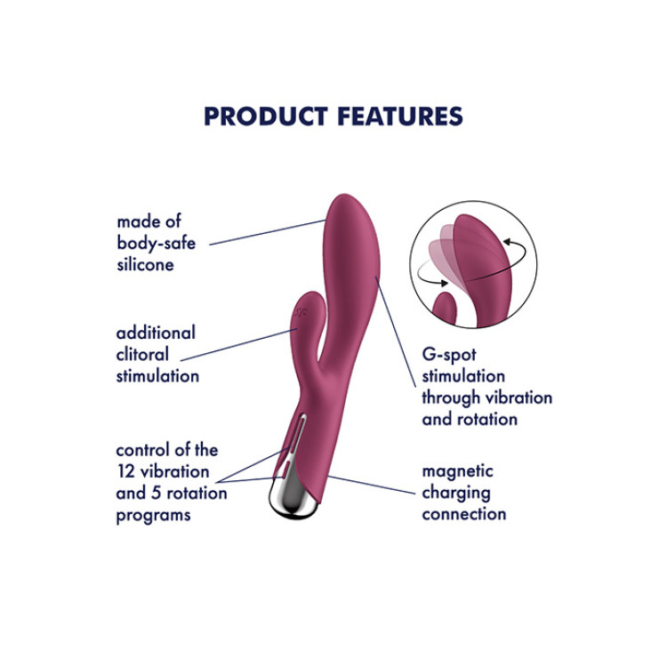 Satisfyer Spinning Rabbit 1 er en rabbitvibrator som skjemmer bort klitoris med deilige vibrasjoner og g-punktet med både vibrasjon og rotasjon på en helt ny måte! Gjør deg klar for en ny og spennende kombinasjon.