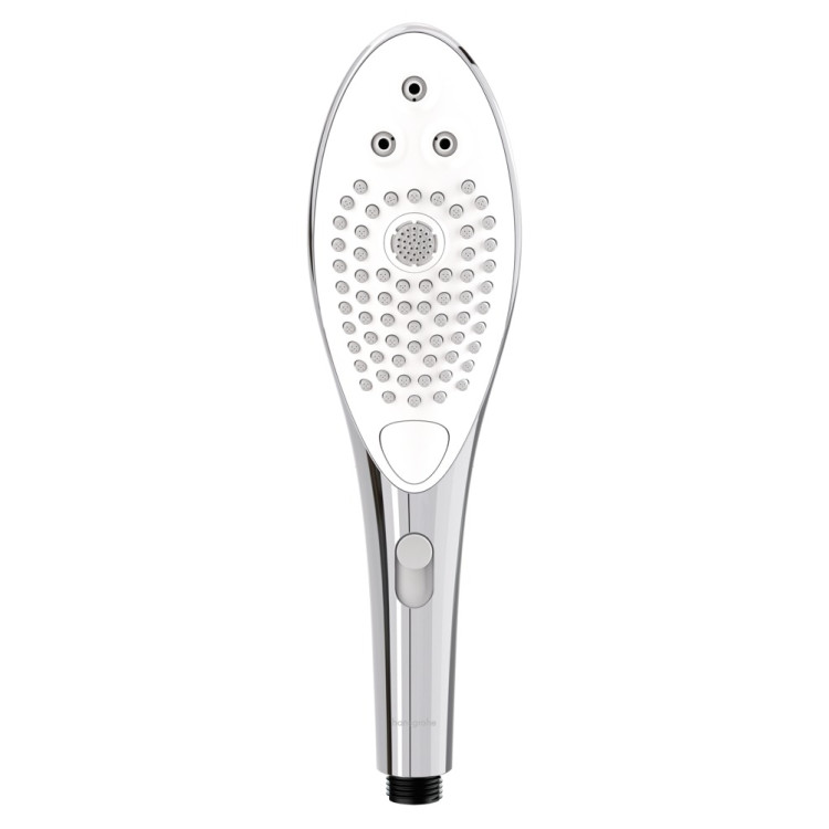 Alle tre modusene styrer du enkelt med en knapp på framsiden av dusjhodet. Du justerer styrken på vannstrålen med en bryter, skyv den opp eller ned for å justere trykket.