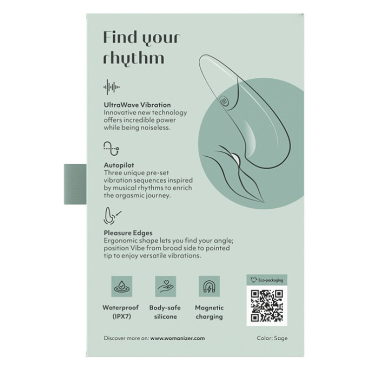 Womanizer Vibe er ergonomisk designet for å treffe akkurat riktig, enten du ønsker bred stimulering eller målrettet nytelse. Den kroppstrygge silikonen føles silkemyk mot huden, og den er selvfølgelig vanntett. Ta med deg din nye bestevenn i både dusjen og badekaret!