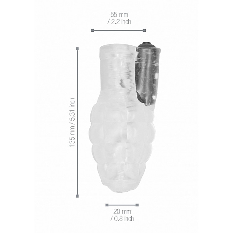 En deilig masturbator med et røft granatutseende. I den ene enden ligger det en bulletvibrator som gir deg en enda deiligere opplevelse!